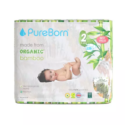 PureBorn nappies are made from organic bamboo, up to 43% absorbent core per nappy. They are dermatologically tested and totally tree free! No trees have been harmed in the making of our nappies. Soft materials have been used in the inner and outler layers of these nappies making them feel smooth against babies' sensitive skin. They have been designed to maintain your child's comfort during fun-filled days & sleepy nights with the assurance of allowing free movement with maximum comfortability as well as optimal performance. They're Vegan & Cruelty-Free & do not have any ingredients of animal origin. Never tested on animals and are certified and approved by V-label & PETA. Free from Heavy Metals, Allergens & Pesticides.