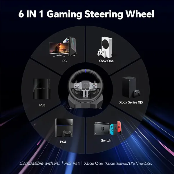 • Multi-Platform Compatibility: PXN V9 GEN2 compatible for PC, PS3, PS4, Xbox One, Xbox Series X/S, and Switch. It features a dedicated app for adjustments, allowing personalized steering wheel settings. Players can download and install the "PXN Wheel" app from the Apple App Store or Google Play. (Note: The gear shifter is only compatible with simulation driving games and not with racing games.)