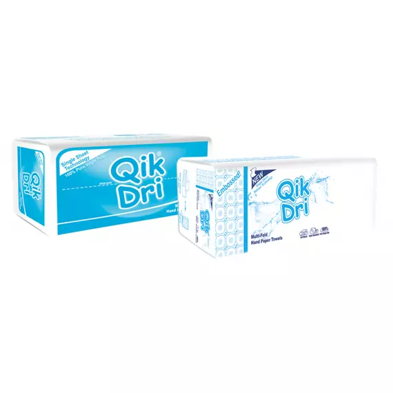 Qik Dri Safari white hand paper towels are our latest most innovative, extra strong and disposable hand paper towels. Our new technology ensures the pattern applied to the tissues makes them super strong and extra absorbent. They are made from 100% pure quality virgin pulp making them 100% biodegradable and disposable. The sheets are fully embossed for extra absorption. Our new single sheet technology also ensures that only one sheet comes out at a time, therefore reducing wastage.
