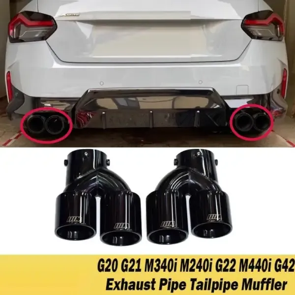 COMPATIBLE WITH BMW 3 SERIES G20 G28 M2 G42 G87 340I 2018-2022 QUAD DUAL M PERFORMANCE EXHAUST STAINLESS STEEL MUFFLER TIPS NOZZLE BLACK CARBON FIBER M