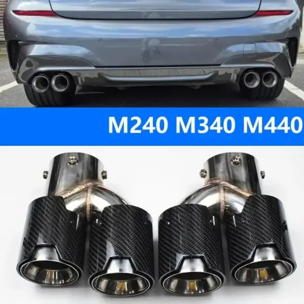 Quad Dual M Performance Exhaust Stainless Steel Muffler Tips Nozzle Black Carbon Fiber M CC-5270 Compatible With Bmw 3 Series G20 G28 M2 G42 G87 340i 2018-2022