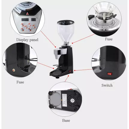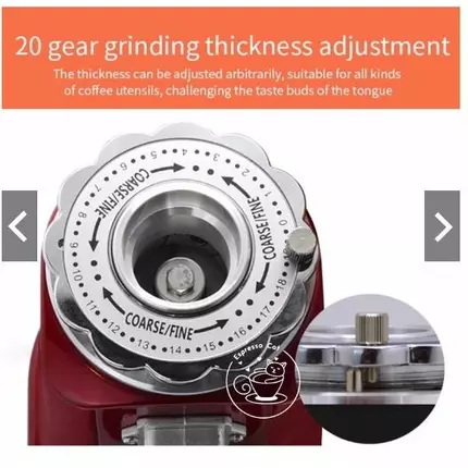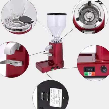 Application: Coffee Shops, Bubble Tea Shops, Restaurants and so on.Function: Strengthen Horsepower, Harden Grinder, Low-temperature Grinding CoffeePurpose: Professionally Ground Coffee Features Multi-range adjustment grinding size. 200W powerful DC motor, quite sound & can operate continuously. Special super-hard burr Push button on-off Overload switch to protect the grinder from over current or high temperature Stainless steel: Made of stainless steel materials, corrosion resistance, healthy and good mechanical properties. Aluminum alloy: Made of high quality aluminum alloy material, antirust and anticorrosion, has good thermal conductivity and stability. Powerful: High quality high speed steel blade and ceramic grinding core, equipped with powerful overload protection. Application: Coffee Shops, Bubble Tea Shops, Restaurants and so on. Purpose: Professionally Ground Coffee How to Use: Turn the scale to the desired thickness of coffee powder Open the power to start motor Put the coffee beans in the funnel Pull black cover lid to start grinding and place the portafilter on the fork stand Specifications: Raccea 60mm Flat Burr Coffee Grinder With Standard Burr Version Power: 200 Watt Voltage / Hz: 220V/50Hz Weight: 5.5Kg Dimensions: 415mm x 188mm x 310mm Bean hopper cap: 1Kg Grinder blade: 60mm Colour: Black, Red, Body material: ABS RPM: 2500 Average Grinding Speed: 1.5-2.5G/S
