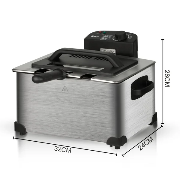The RAF Multifunctional Home 7.5L Stainless-Steel Basket Double Tank Electric Deep Fryer is a high-capacity, powerful appliance designed for family cooking. It combines efficient 2000W heating with thoughtful safety features like an anti-scalding design and a cool-touch handle, making it a versatile and user-friendly addition to any kitchen.