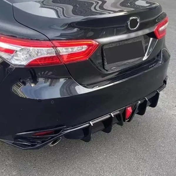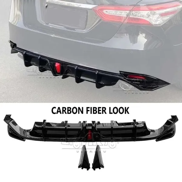 COMPATIBLE WITH TOYOTA CAMRY 2018-2023 REAR AFTER BUMPER AFTER LIP SPLITTER SKIRTS DIFFUSER F1 STYLE WITH LIGHT AR-TOYOTA-0114 CF CARBON FIBER LOOK