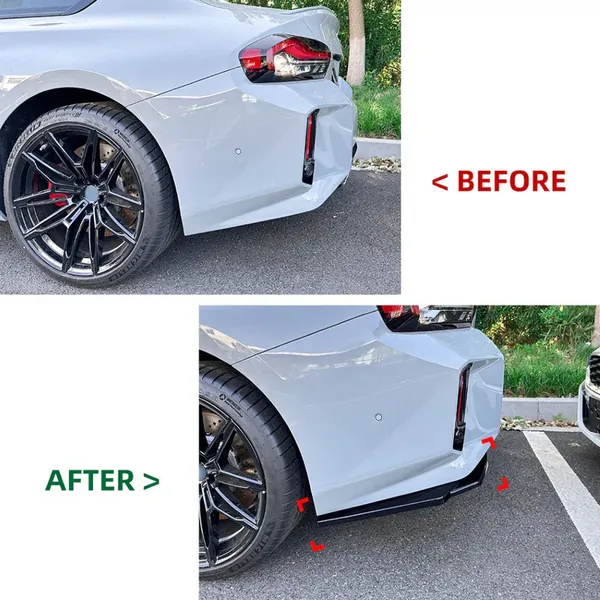 COMPATIBLE WITH BMW 2 SERIES M2 G87 G42 2020+ REAR AFTER BUMPER LIP DIFFUSER SPLITTER SKIRST FLAG CANARD CARBON FIBER LOOK ZST-765 CF