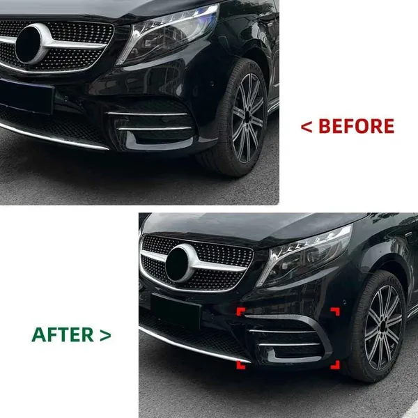 Rear Amg Bumper Air Vent Splitter Side Skirts Flag Canard Carbon Fiber Look Zst-578 Cf CC-6203 Compatible With Mercedes Benz V Class W447 2018-2023