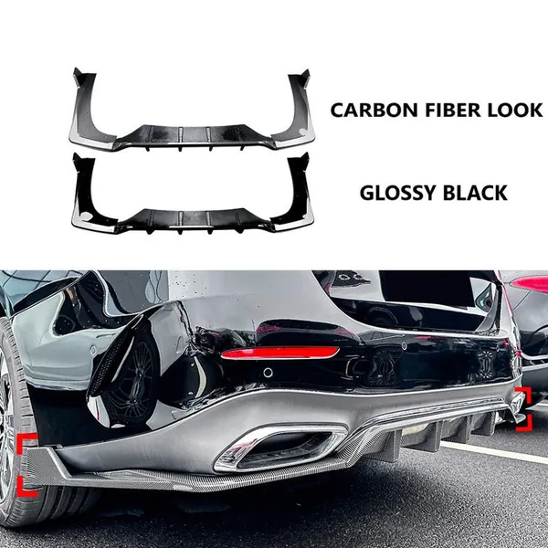 COMPATIBLE WITH MERCEDES BENZ E CLASS W214 2024+ REAR AMG BUMPER AFTER LIP SPLITTER SKIRST DIFFUSER ZST-808 GB GLOSSY BLACK