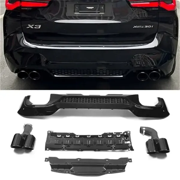 Compatible With Bmw X3 G01 2018-2021 Rear Bumper After Lip Diffuser X3m Style Glossy Black