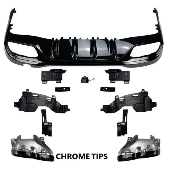 Rear Bumper Diffuser After Lip Splitter Skirts With Exhaust Tips Zst-398 Ch Chorme Tips CC-4289 Compatible With Mercedes C Class W206 2022+