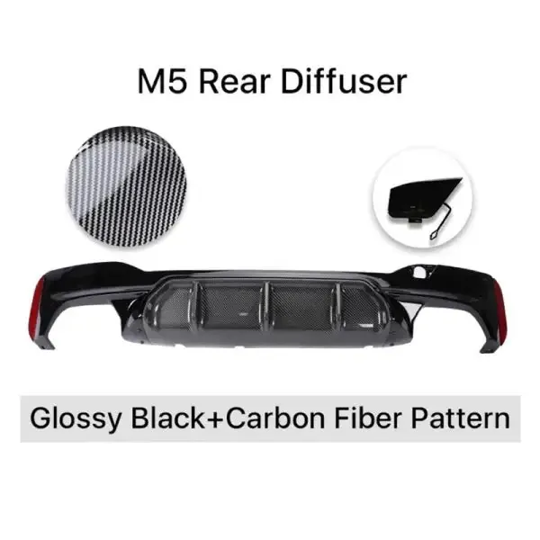Rear Bumper Lip Rear Diffuser M5 M Sports M Performance M Sports M5cs After Lip Black And Cf Look M5 AR-BMW-0192 CC-3029 Compatible With BMW 5 Series G30 Lci 2021+