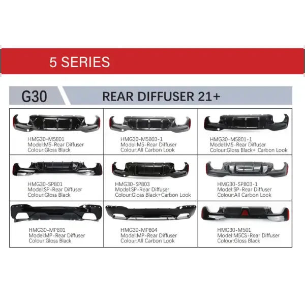 Compatible With Bmw 5 Series G30 Lci 2021+ Rear Bumper Lip Rear Diffuser M5 M Sports M Performance M Sports M5csg30 Lci After Lip Black And Cf Look M5 M5801-1