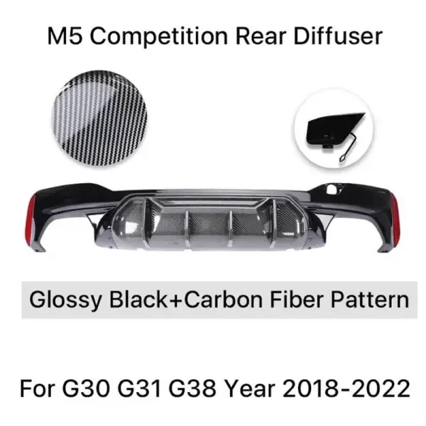 Rear Bumper Lip Rear Diffuser M5 M Sports M Performance M Sports M5cs G30 After Lip Black And Carbon Look Sp CC-3024 Compatible With Bmw 5 Series G30 2017-2021
