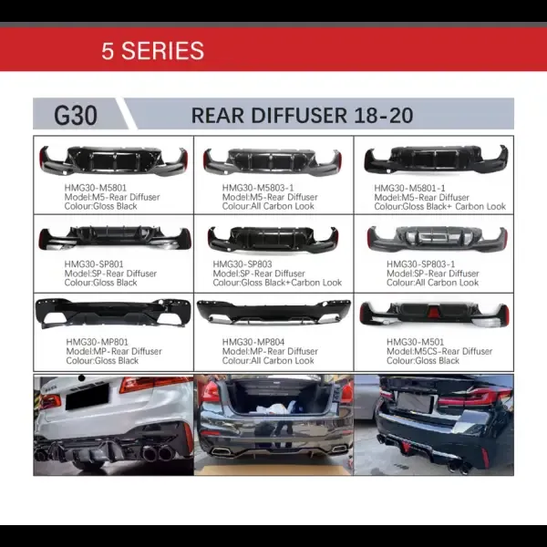 Compatible With Bmw 5 Series G30 2017-2021 Rear Bumper Lip Rear Diffuser G30 After Lip Black And Carbon Look Sp 803