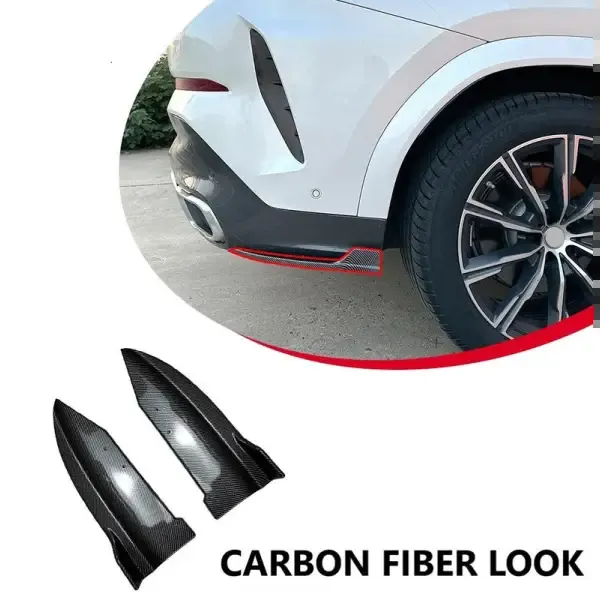 Rear Bumper Lip Splitter Skirts Flag Spoiler Zst-563 Cf Carbon Fiber Look CC-4090 Compatible With Bmw X6 G06 2019-2023