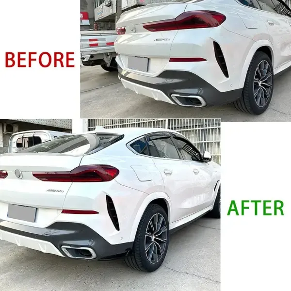 Compatible With Bmw X6 G06 2019-2023 Rear Bumper Lip Splitter Skirts Flag Spoiler Zst-563 Gb Glossy Black