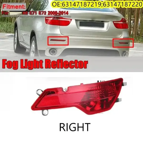 COMPATIBLE WITH BMW X6 E71 2006-2010 REAR BUMPER REFLECTOR LIGHT RED LENS 63147187220 GC RIGHT