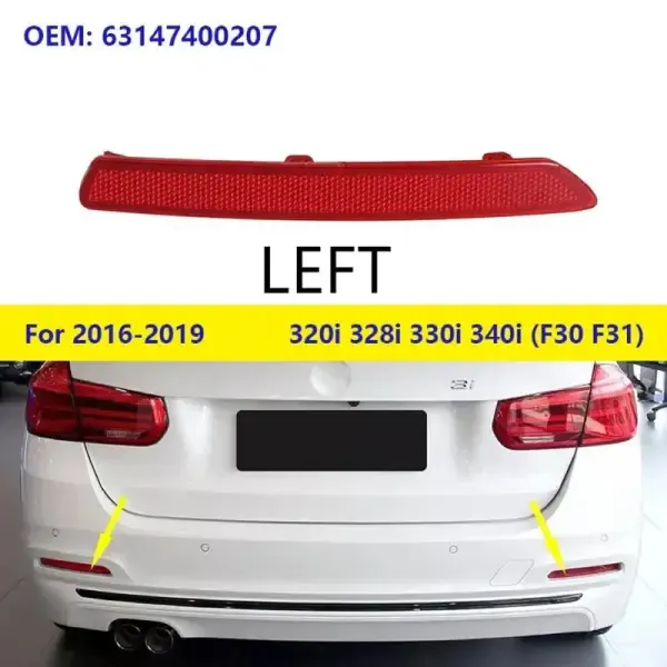 COMPATIBLE WITH BMW 3 SERIES F30 LCI 2015-2018 REAR BUMPER REFLECTOR LIGHT RED LENS 63147400207 GC LEFT