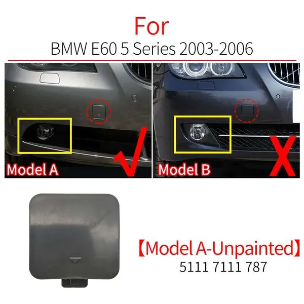 COMPATIBLE WITH BMW 5 SERIES E60 2003-2009 REAR BUMPER TOW HOOK TOWING TOCHAN TRAILER COVER 51117111787 MODEL A UNPAINTED