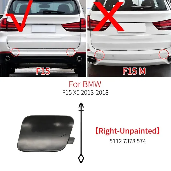 COMPATIBLE WITH BMW X5 F15 2014-2018 REAR BUMPER TOW HOOK TOWING TOCHAN TRAILER COVER 51127378574 UNPAINTED RIGHT