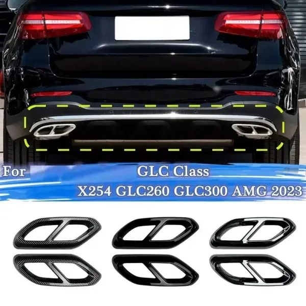 Compatible With Mercedes Glc W254 X254 2023+ Rear Bumper Turbo Muffler Single Exhaust Tips Pipe Cover Zst-465 Cf Carbon Fiber Look