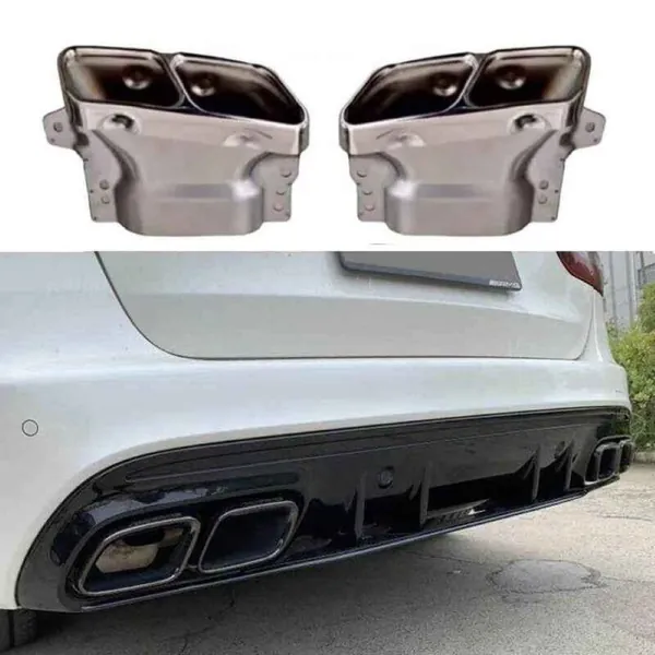 Rear Bumper Upgrade Convert To Amg Amg45 Exhaust Tip Pipe Silver Chrome GC W176-011 CC-9464 Compatible With Mercedes Benz A Class W176 2012-2016