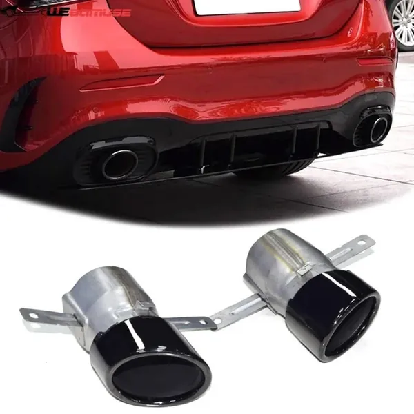 Rear Bumper Upgrade Convert To Amg Amg45 Exhaust Tip Pipe Single Black GC W177-012 CC-9472 Compatible With Mercedes Benz A Class W177 CLA GLA GLB W118 C118 W247 X247 2018-2024