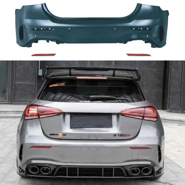 COMPATIBLE WITH MERCEDES BENZ A CLASS W177 2018-2024 REAR BUMPER UPGRADE CONVERT TO AMG AMG45S BUMPER BODYKIT FOR HATCHBACK CAR W177-004