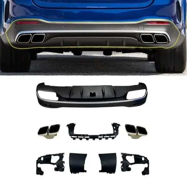 Compatible With Mercedes Benz Gle Gls W167 X167 C167 Gle63 Gls63 Amg 2019+ Rear Diffuser Bumper Spoiler Splitters Exhaust Muffler Tips Pp Accessories Black Tips Zst-240 Gb