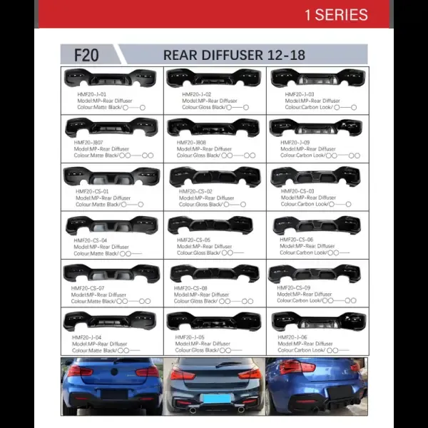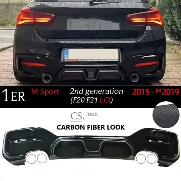 Rear Lip Diffuser Rear Diffuser After Lip Carbon Fiber Look Cs 00-00 Dual Side Dual CC-3198 Compatible With BMW 1 Series F20 LCI 2015-2019