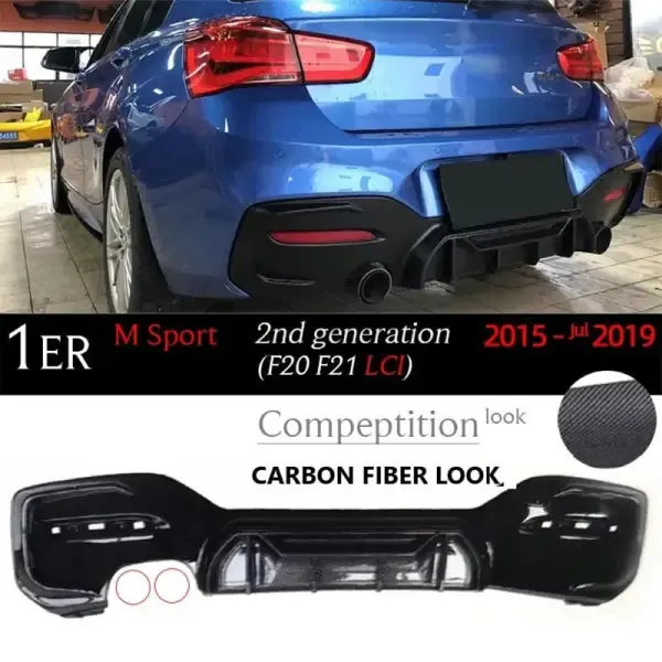 Compatible With Bmw 1 Series F20 Lci 2015-2019 After Rear Lip Diffuser Rear Diffuser F20 Lci After Lip Carbon Fiber Look Jj 00- Single Side Dual