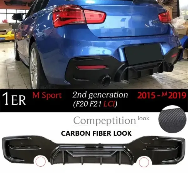 Compatible With Bmw 1 Series F20 Lci 2015-2019 After Rear Lip Diffuser Rear Diffuser F20 Lci After Lip Carbon Fiber Look Jj 0-0 Dual Side Single