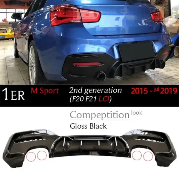 Compatible With Bmw 1 Series F20 Lci 2015-2019 After Rear Lip Diffuser Rear Diffuser F20 Lci After Lip Glossy Black Jj 00-00 Dual Side Dual