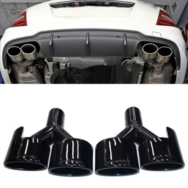 COMPATIBLE WITH MERCEDES BENZ C CLASS W204 2007-2014 E CLASS W212 2009-2014 CLA W219 S CLASS W221 2008-2014 REAR MUFFLER EXHAUST PIPE TIPS BLACK ROUND