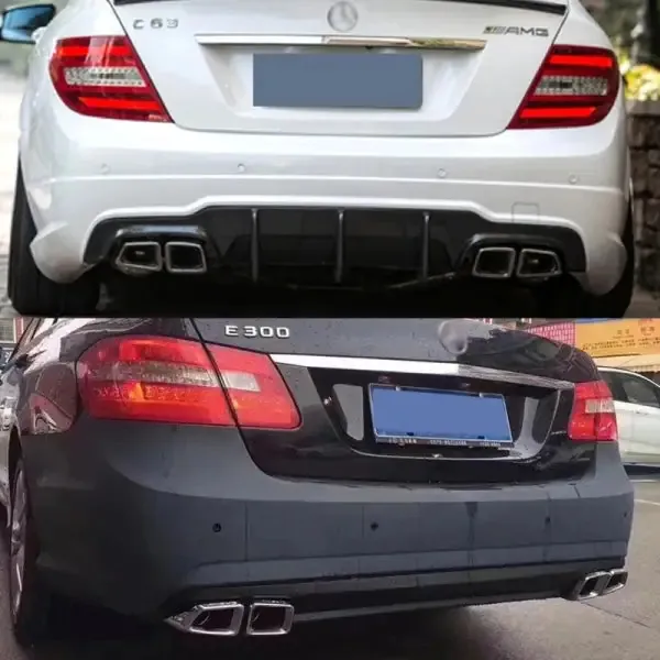 COMPATIBLE WITH MERCEDES BENZ C CLASS W204 2007-2014 E CLASS W212 2009-2014 CLA W219 S CLASS W221 2008-2014 REAR MUFFLER EXHAUST PIPE TIPS SQUARE BLACK