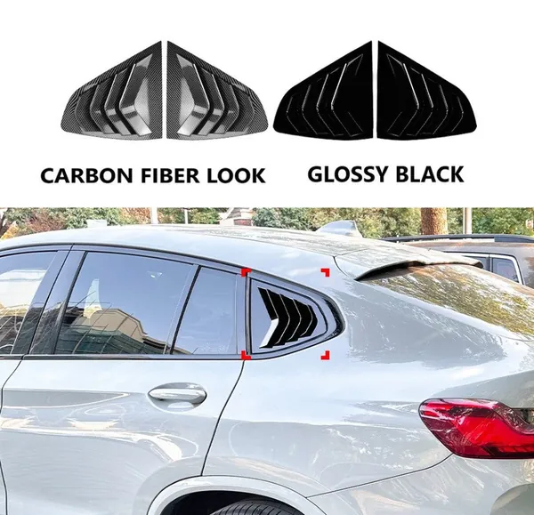 COMPATIBLE WITH BMW X4 G02 2018-2024 REAR SIDE WINDOW MIRROR LOUVER SPOILER COVER CARBON FIBER LOOK ZST-685 CF