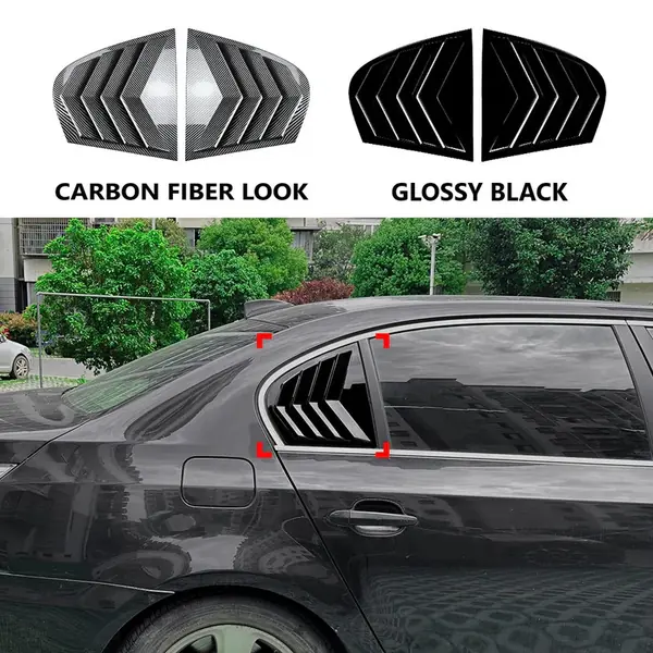 COMPATIBLE WITH BMW 5 SERIES E60 2004-2009 REAR SIDE WINDOW MIRROR LOUVER SPOILER COVER GLOSSY BLACK ZST-689 GB
