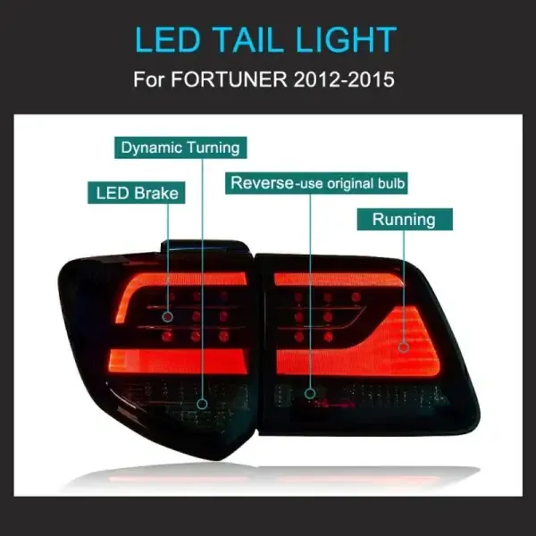 COMPATIBLE WITH TOYOTA FORTUNER 2012-2015 REAR TAIL LIGHT TAILLIGHT TAIL LAMP BENZ STYLE SMOKE