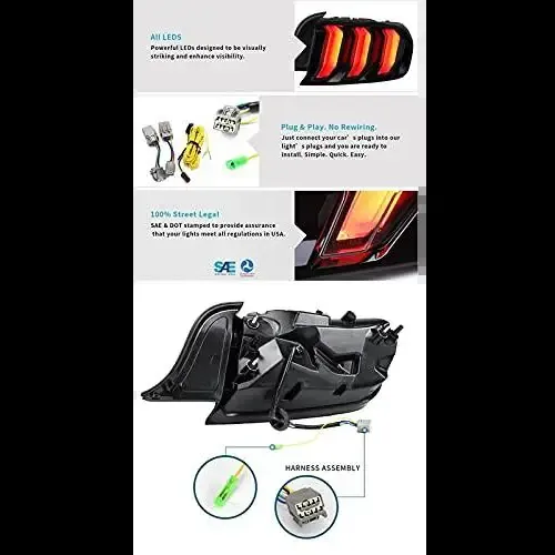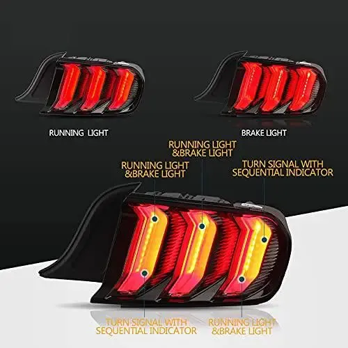 Rear Taillight Taillamp Light LED Red Yab-xmt-2036 CC-2895 Compatible With Ford Mustang 2012-2018