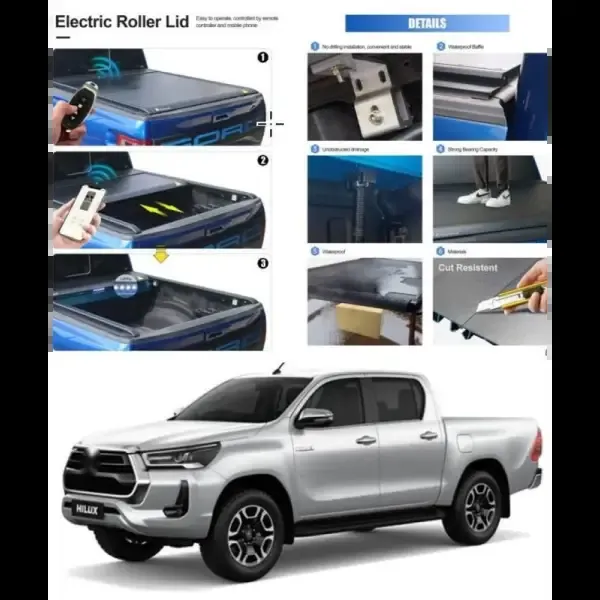 Rear Truck Bed Retractable Lid Tonneau Tray Cover Roller Back Rear Controlled By Electric Automatic Remote CC-5134 Compatible With Toyota Hilux Revo 2015-2024