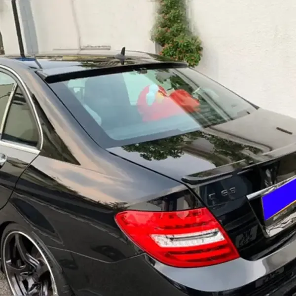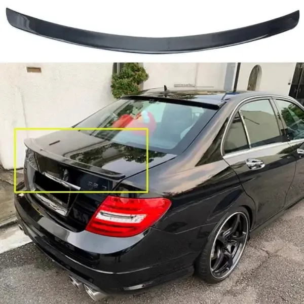 Compatible With Mercedes C Class W204 2007-2014 Rear Trunk Mid Lip Spoiler Splitter Skirts Zst Glossy Black