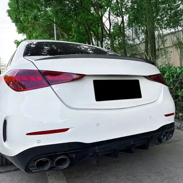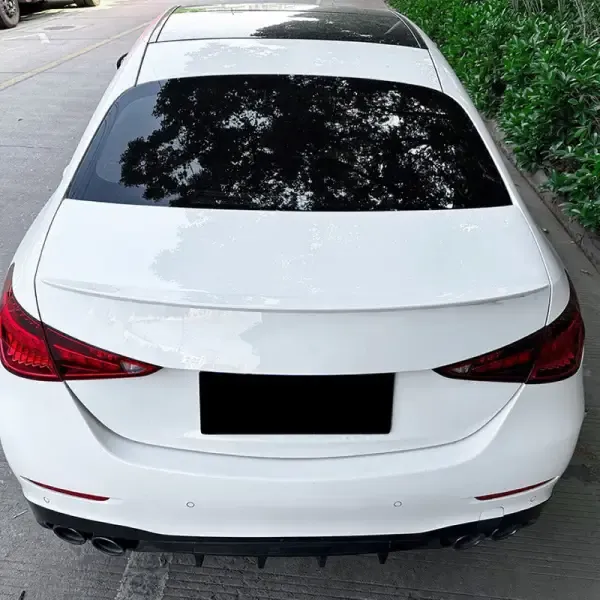 Compatible With Mercedes C Class W206 2022+ Rear Trunk Mid Wing Lip Splitter Skirts Flag Spoiler Amg C43 C63 Style Zst-046 Gw Glossy White