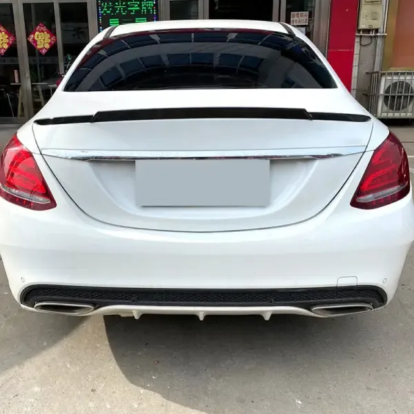 Compatible With Mercedes C Class W205 2015-2022 Rear Trunk Mid Wing Lip Splitter Skirts Flag Spoiler Brabus Style Zst-065 Gb Glossy Black