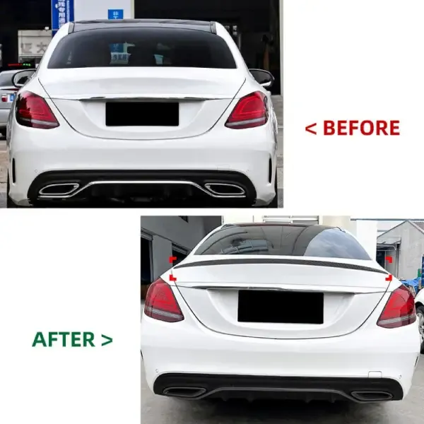 Compatible With Mercedes C Class W205 2015-2022 Rear Trunk Mid Wing Lip Splitter Skirts Flag Spoiler Zst-028 Cf Carbon Fiber Look