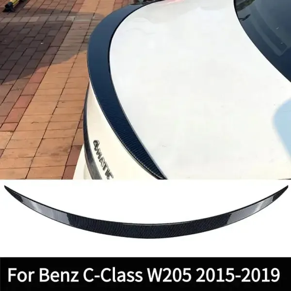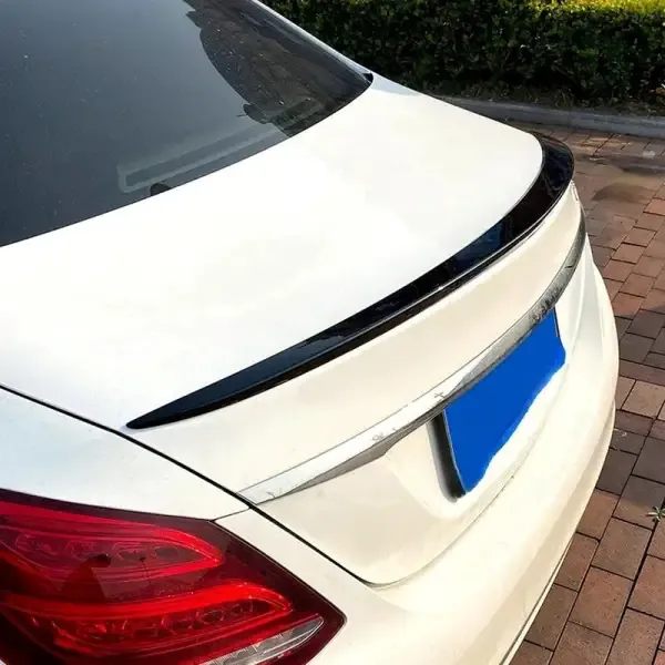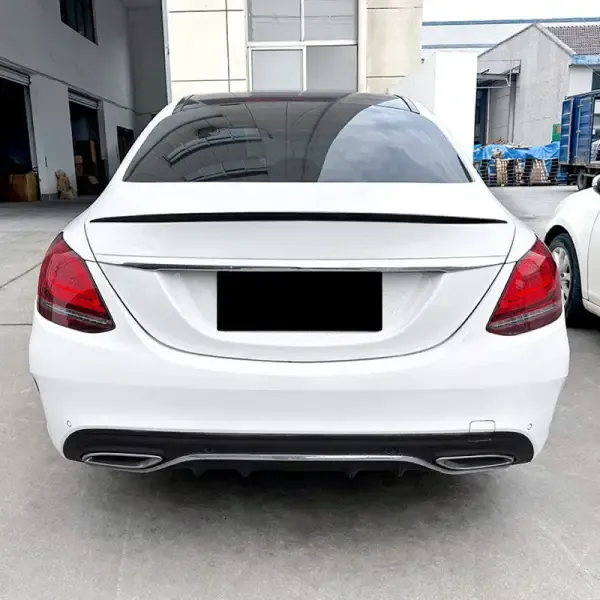 Compatible With Mercedes C Class W205 2015-2018 Rear Trunk Mid Wing Lip Splitter Skirts Flag Spoiler Zst Glossy Black