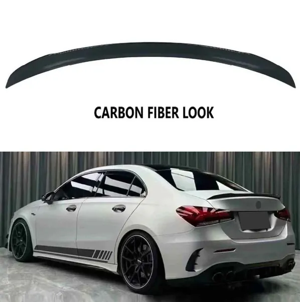 COMPATIBLE WITH MERCEDES BENZ A CLASS W177 2018-2024 REAR TRUNK WING BOOT LIP SKIRTS SPOILER AMG STYLE CARBON FIBER LOOK W177-015/016 CF