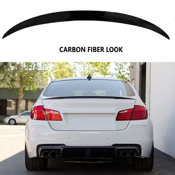 Rear Trunk Wing Boot Spoiler Lip Splitter Skirt P Style Carbon Fiber Look CC-8593 Compatible With Bmw 5 Series F10 2010-2017