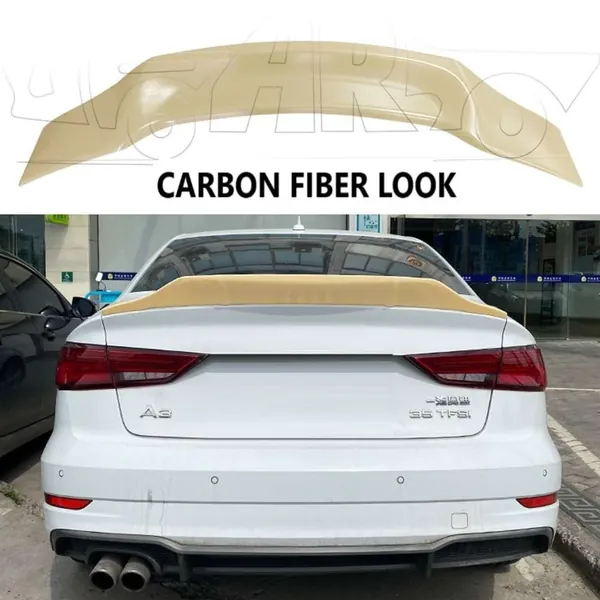 COMPATIBLE WITH AUDI A3 2014-2020 REAR TRUNK WING BOOT SPOILER LIP SPLITTER SKIRT R STYLE AR-AUDI-039 CF CARBON FIBER LOOK