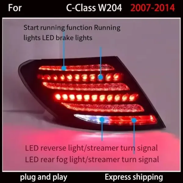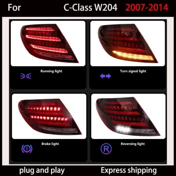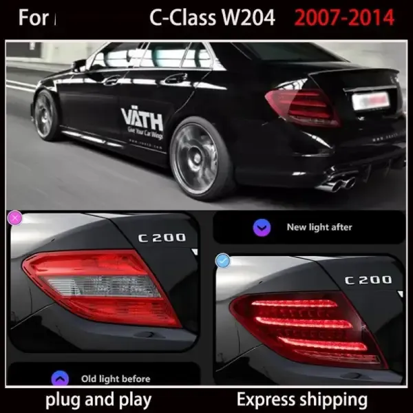 COMPATIBLE WITH MERCEDES BENZ C CLASS W204 2007-2014CAR REAR UPGRADED TAIL LIGHT LAMP XENON TAILLIGHT RETROFIT UPGRADE MODIFIED LED DRL HID LASER RED MAYBACH STYLE