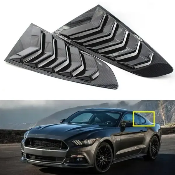 Rear Window Vent Outlet Louver Fender Trim Carbon Fiber Look Window Louver CC-1957 Compatible With Ford Mustang 2015-2018