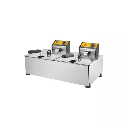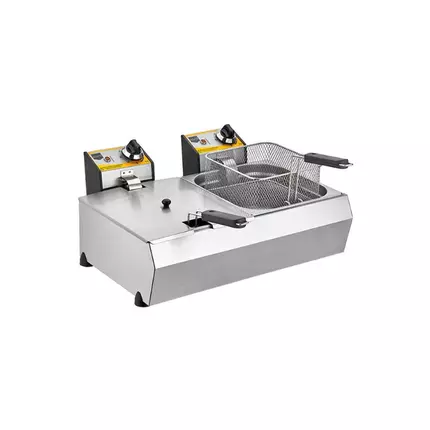 The Remta R102 double chamber fryer is an electrically operated device with a total oil capacity of 16 liters. This type of fryer is usually used in restaurants, cafes, fast-food establishments and other food businesses. Each chamber has a capacity of 8 litres, offering a total oil capacity of 16 litres. This is ideal for businesses that require frying large quantities and allows different types of food to be cooked at the same time. Electric operation makes it easy to use and provides a clean work environment. Electric fryers are generally a safer and more convenient option for indoor use than gas models. Remta R102 double chamber fryer offers high efficiency and reliability, allowing businesses to meet various frying needs quickly and effectively. In addition, its large capacity ensures a continuous frying process even during peak hours and helps provide fast service to customers. Features: Suitable for professional use High precision thermostat It also has a second thermostat. It provides fire safety Steel gastronome Removable steel oil tank Removable basket with handle Stainless steel body Steel cover/lid Specifications: Brand: Remta Model: R102 Type: Fryer Power Source: Electricity Capacity: 8+8 Lt. Product Dimensions: 670x650x340 mm Package Dimensions: 550x690x330 mm Weight: 11 kg Power: 6000W Pack of: 7pcs